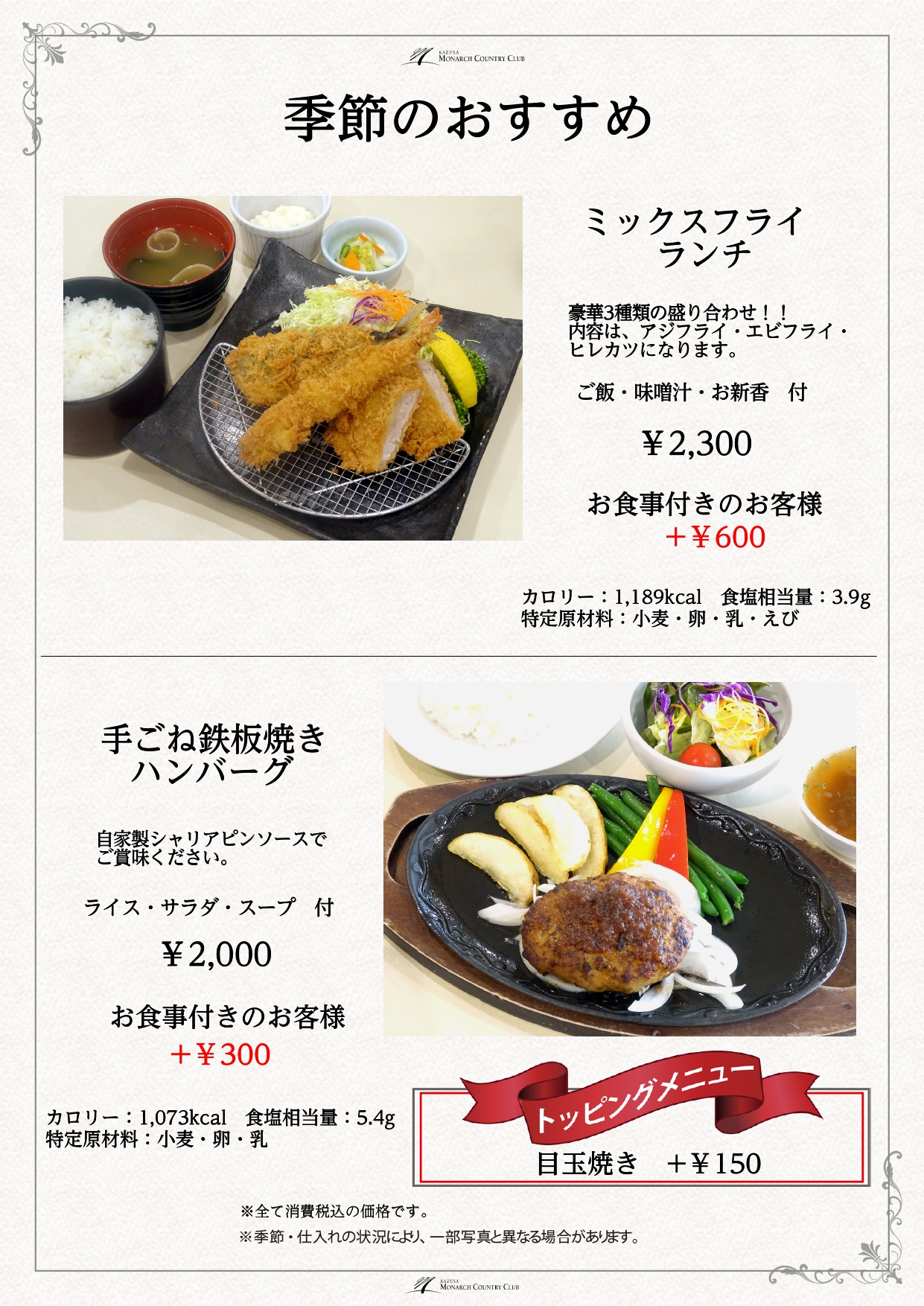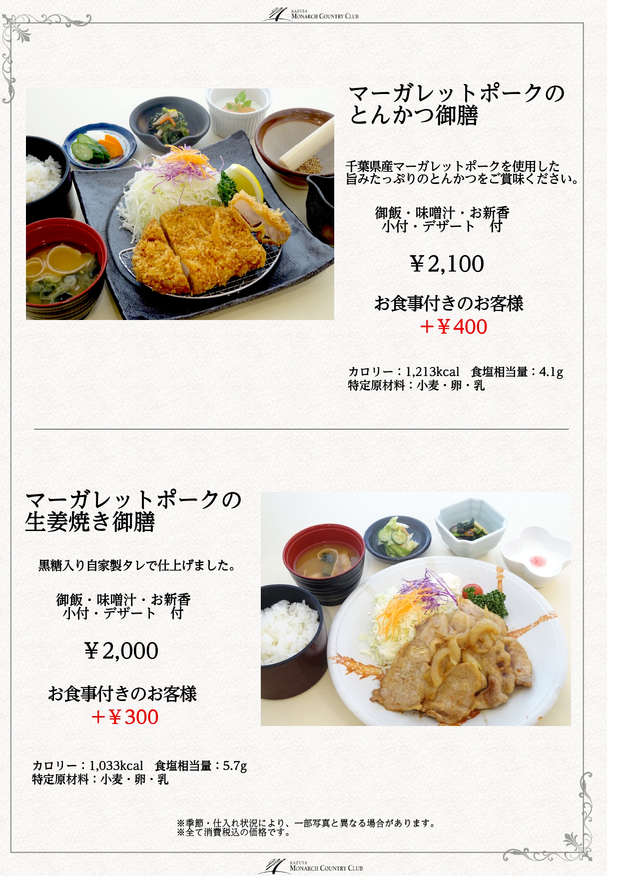 2階のレストランからは、コースの正面を一望、四季折々の景観をお楽しみください。 お料理には厳選された旬の地元の食材を使い、専属シェフが真心をこめてご提供させていただきます。