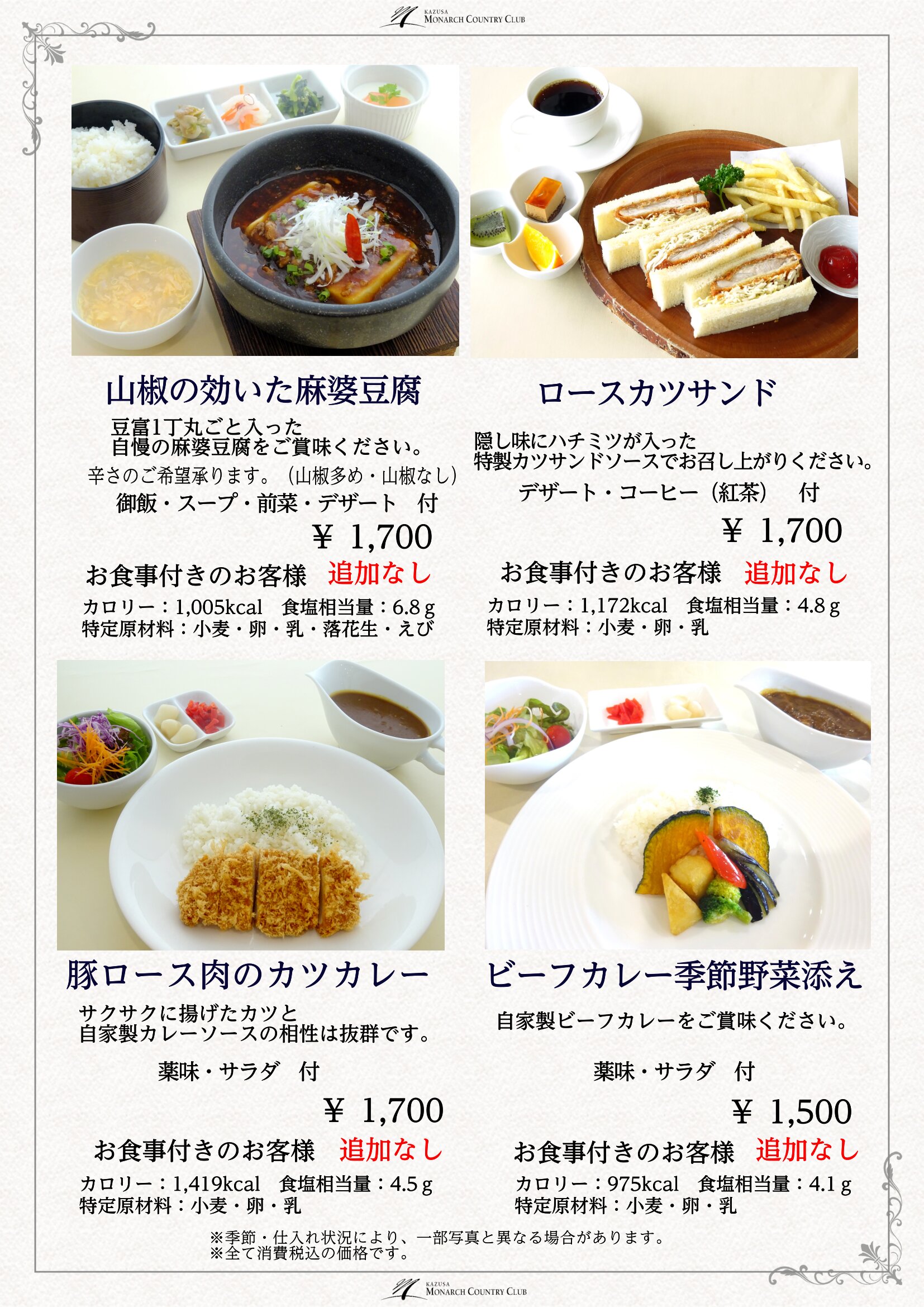 2階のレストランからは、コースの正面を一望、四季折々の景観をお楽しみください。 お料理には厳選された旬の地元の食材を使い、専属シェフが真心をこめてご提供させていただきます。